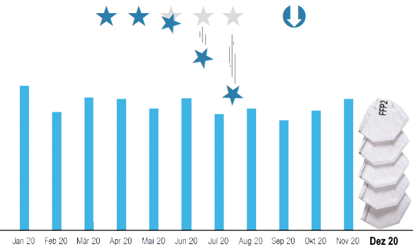 Seit 15.12.2020 sind Sie vermutlich dabei, FFP2-Masken an berechtigte Personen kostenlos abzugeben, und möglicherweise haben Sie schon verschiedene Hinweise bekommen, wie Sie hierbei verfahren sollen um u. a. die Auswirkungen auf den MMR und andere Auswertungen bzgl. Kundenanzahl, Umsatz, Rohertrag usw. möglichst gering zu halten.